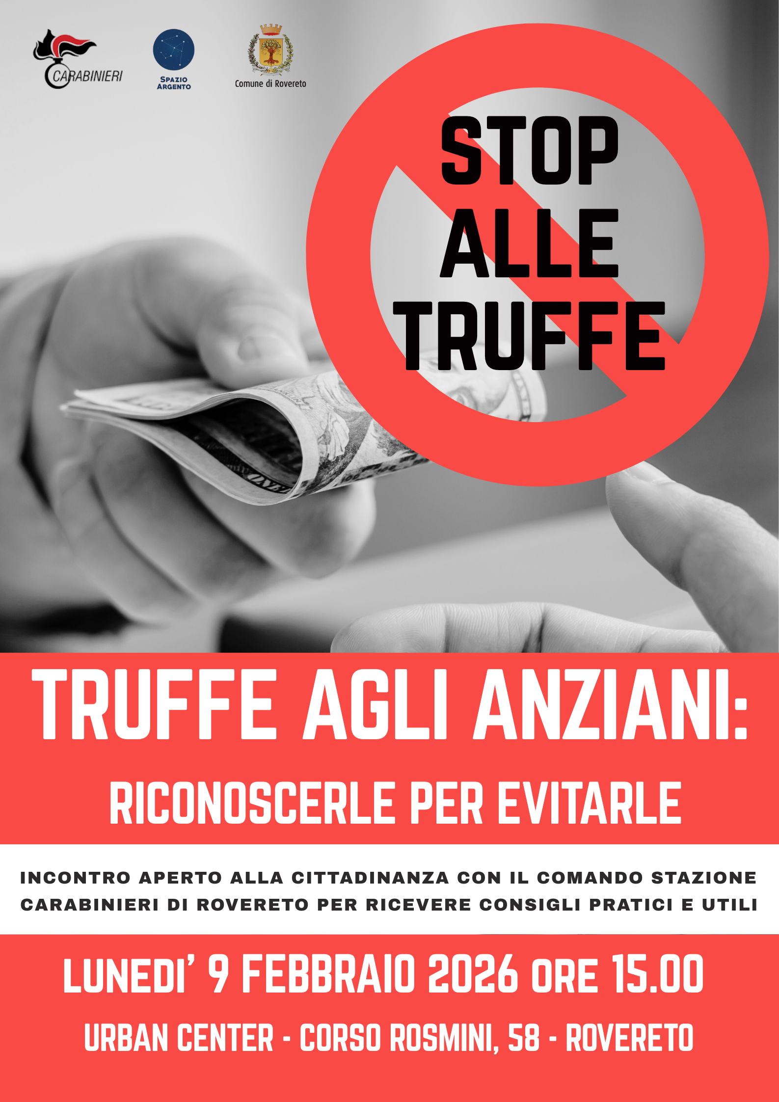 Testo dell'avviso Incontro aperto alla cittadinanza con il Comando Stazione Carabinieri di Rovereto per ricevere consigli pratici e utili
